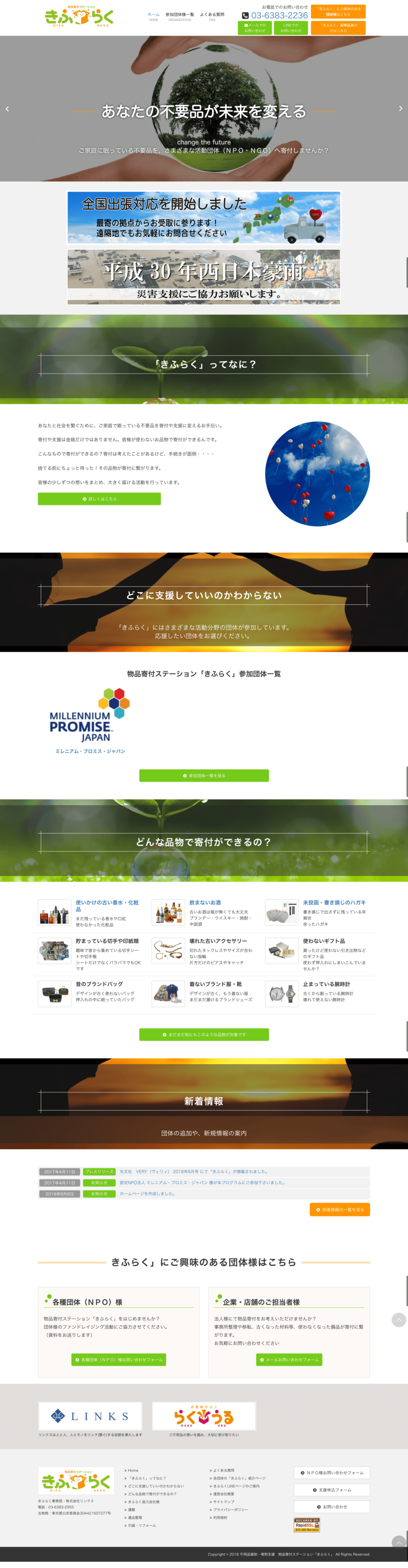 不用品援助・寄附支援 物品寄付ステーション「きふらく」